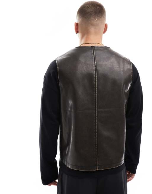 Product Name: Faux leather vest mens sale