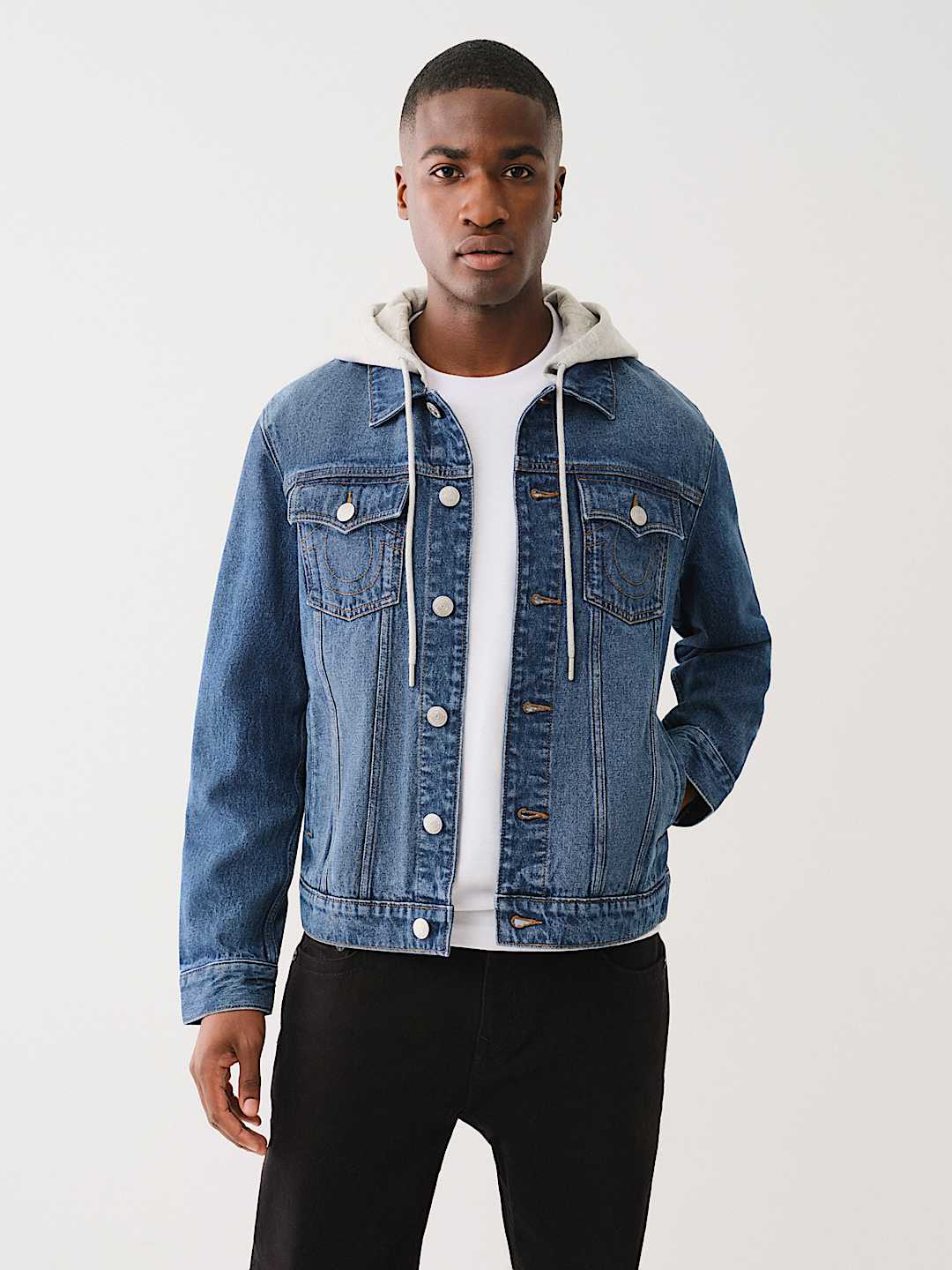 Product Name: Grey hooded jean jacket sale