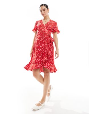 Product Name: Red polka dot ruffle wrap dress sale