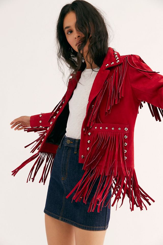 Product Name: Red suede fringe jacket sale