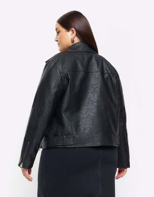 Product Name: River island faux leather biker jacket with detachable hood in black sale