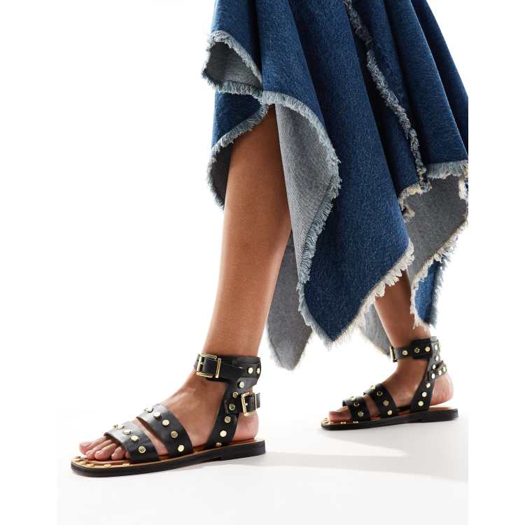 Product Name: Sandali neri bassi con borchie sale