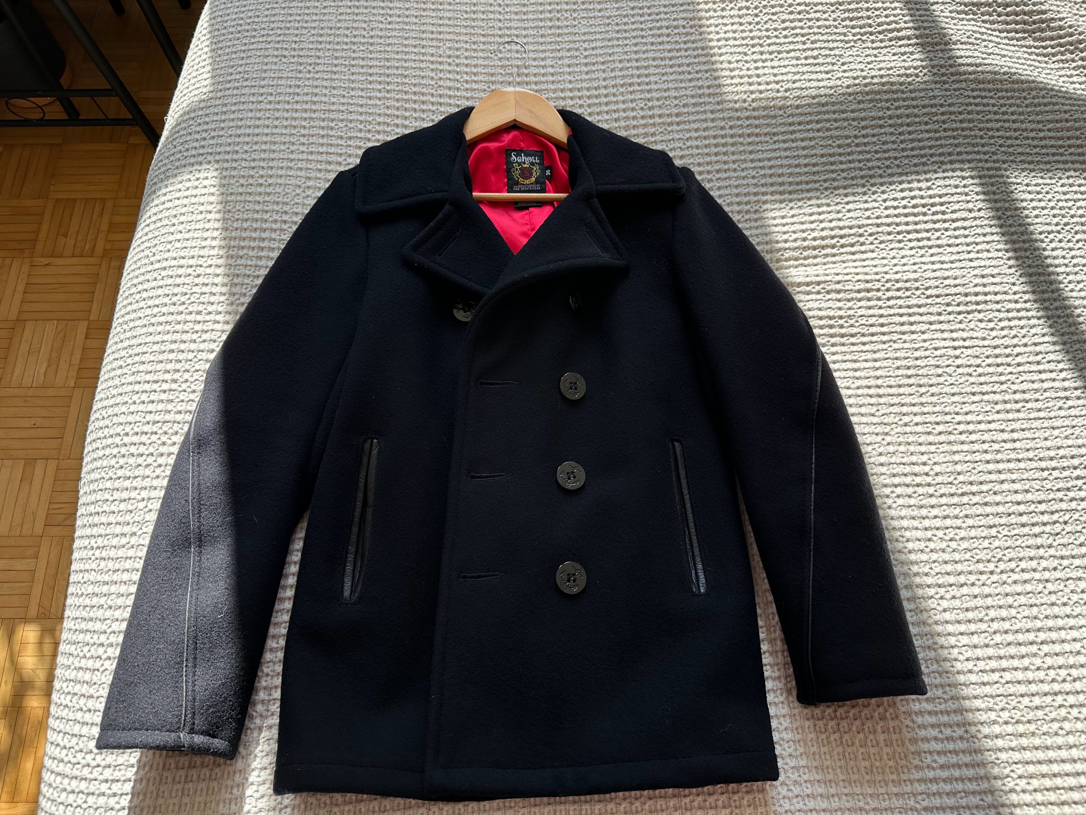Product Name: Schott leather trim peacoat sale