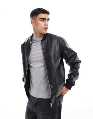 Product Name: Asos design leather bomber jacket in black sale