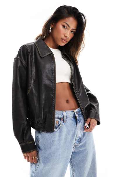 Product Name: Black leather look jacket womens sale