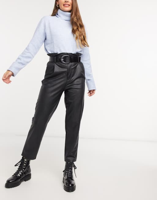 Product Name: Black leather paperbag trousers sale